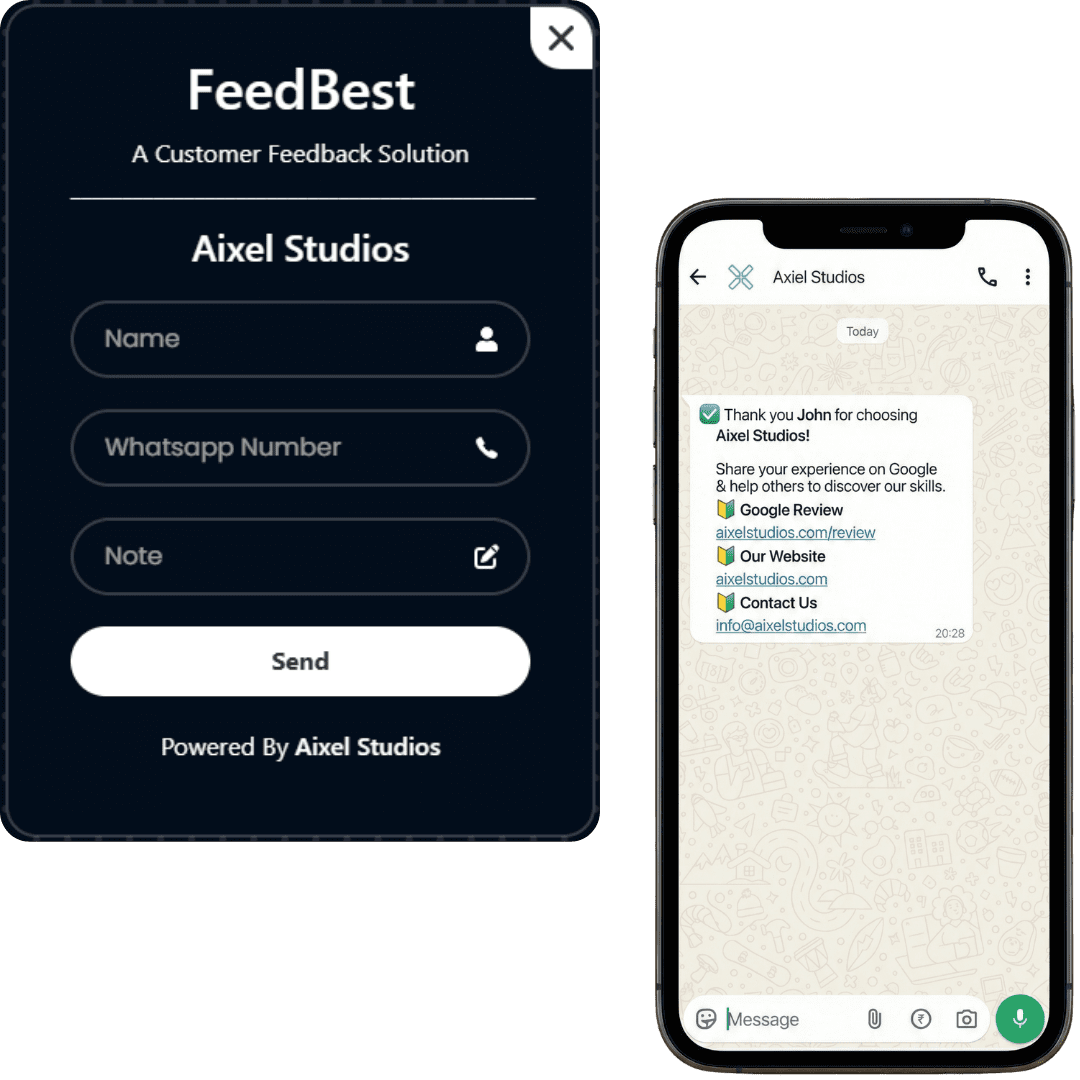 FeedBest automates review collection for service-based businesses. After every completed service, a WhatsApp message is sent to the customer with your review links, helping you generate consistent, high-quality ratings and build online credibility without manual follow-ups.